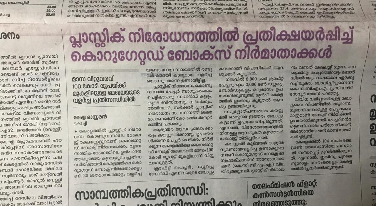 Kerala Corrugated Box Manufacturer’s Association, SWAPNIL ENCLAVE, Door no 40-6185 C7 ,1st Floor Marine drive, High court Jn. Ernakulam-682031