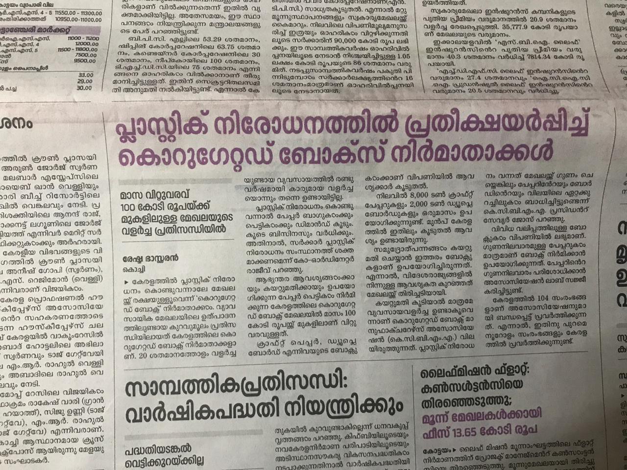 - Interacting with Chambers of Commerces, Export Promotion Councils, Ministry of Industry etc in formulating policies pertaining to corrugated box industry.